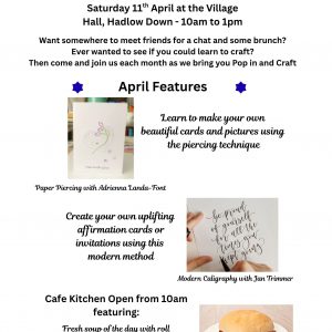 The Hatch will be open serving drinks and refreshments (including home-made hot-cross buns) from 10-4
